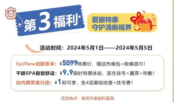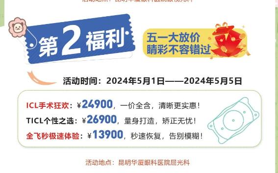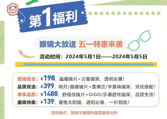 睛彩不停歇,昆明华厦眼科放“价”不放假,这个五一,将与您一起。迎接清晰、健康的视界和无限的可能