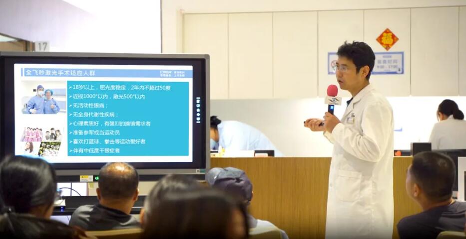 活动中,郑科院长深入浅出地科普了全飞秒手术的诸多关键信息,详细阐述了全飞秒手术术前、术中、术后全过程,以及全飞秒技术的原理、优势、适用症和禁忌症等,让在场的近视朋友对全飞秒有了更加深入的了解。