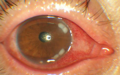 浑浊——因为伴随着角膜浸润、角膜溃疡,角膜炎还会导致角膜的浑浊,若角膜浑浊发生在中央光学区,对患者视力的影响就会比较明显。