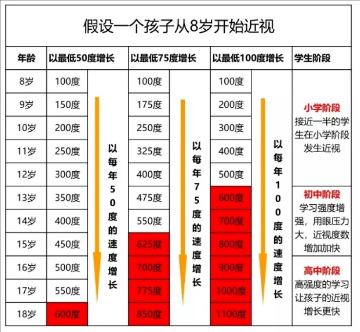 近视的度数每年还会有25度、50度、75度甚至更高的增长