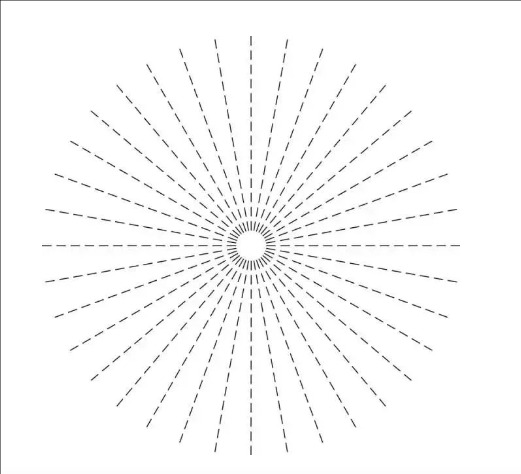 如所有虚线均匀排布,没有特别的深浅区分,则不存在眼睛明显的散光现象