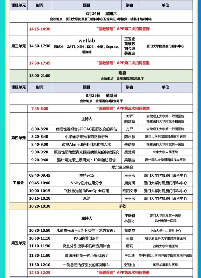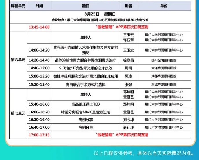 为了促进青光眼疾病诊治新进展的经验分享和成果交流,第十届华厦眼科青光眼论坛暨国家级继续医学教育项目“青光眼新进展学习班”将于2024年8月24-25日在厦门召开。
