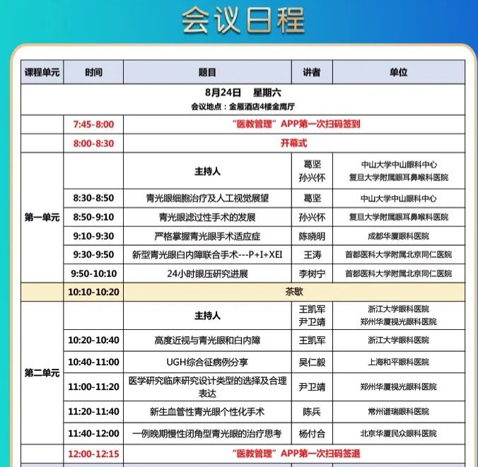 本次会议采用线上线下相结合的形式举办,届时将同步开启线上直播,参会人员可通过手机微信扫描海报二维码即可报名观看。欢迎广大眼科专家及同仁参加此次盛会,8月24-25日期待与您云端相聚!