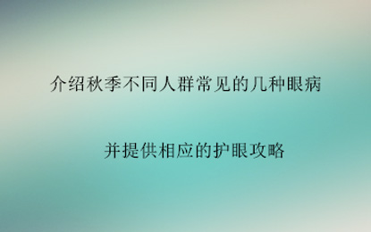 介绍秋季不同人群常见的几种眼病 并提供相应的护眼攻略