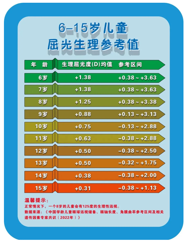 【6~15岁学龄儿童眼球远视储备的参考区间】