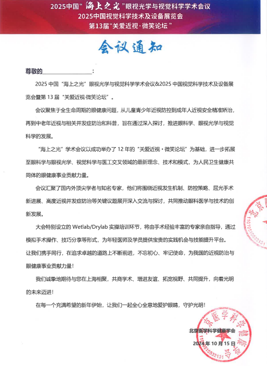 2025“海上之光”眼视光学与视觉科学学术会议暨第十三届关爱近视·微笑学术研讨会将于2025年1月2-5日在上海举行!