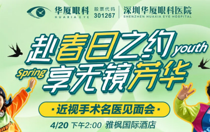 4月20日下午2点,深圳华厦眼科医院将在雅枫国际酒店举办赴春日之约享无镜芳华近视手术名医见面会。