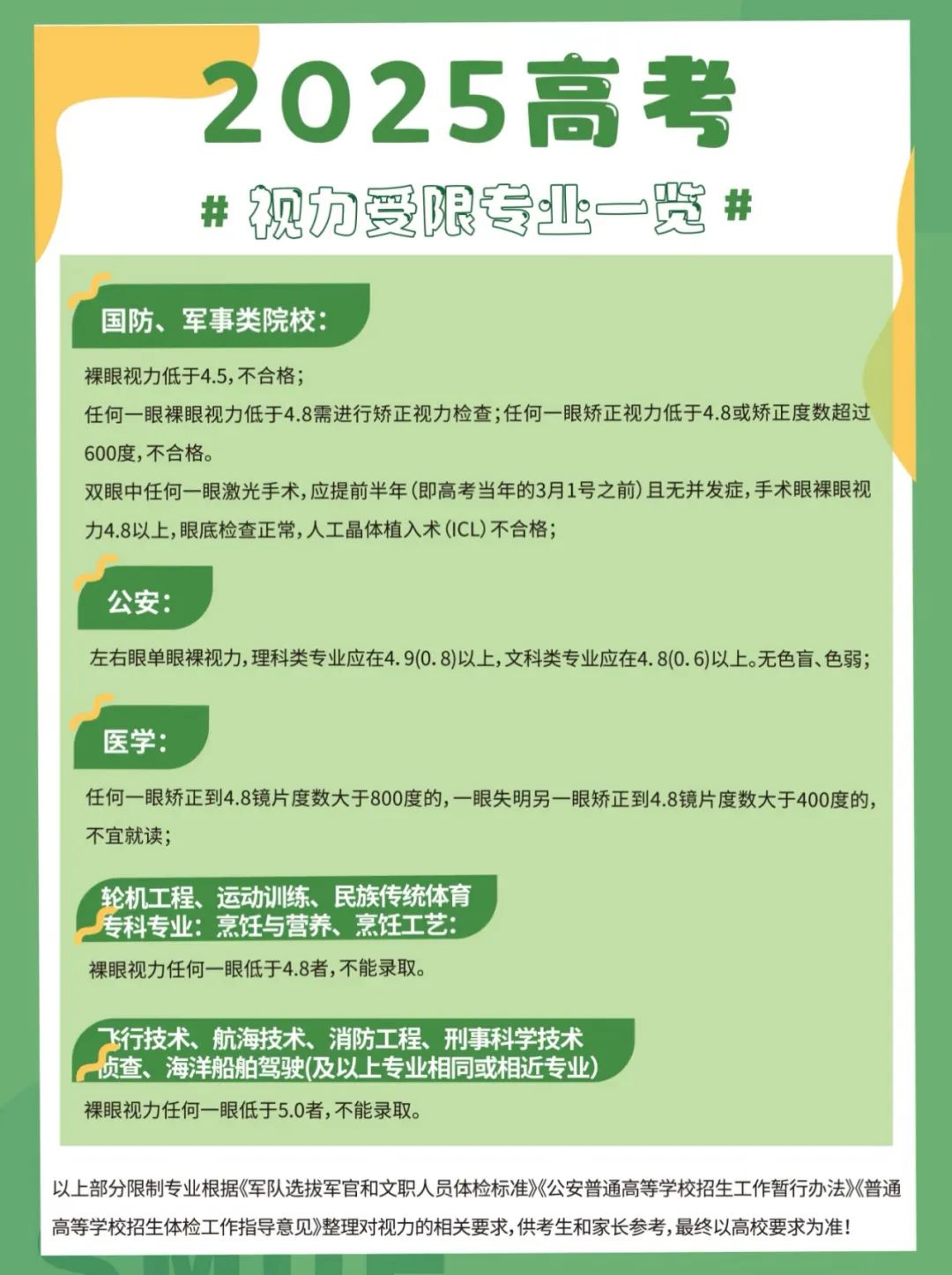填报高考志愿时,部分院校及专业对视力有要求: