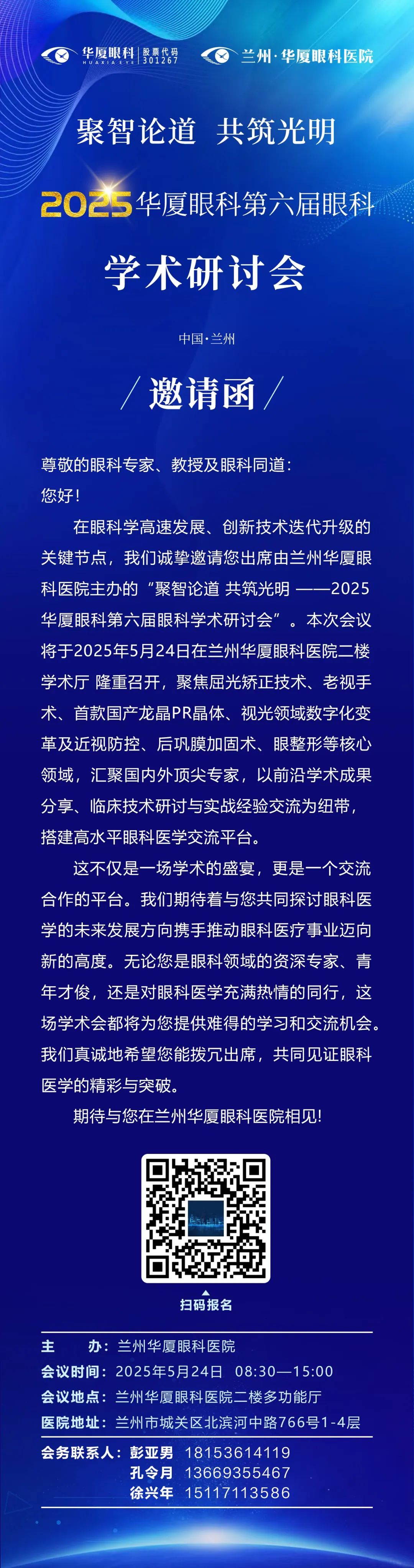 2025年5月24日,2025兰华厦眼科第六届眼科学术研讨会将要举办,欢迎参加。