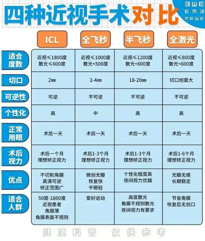 无论是激光手术还是ICL晶体植入术,都是屈光不正(近视、远视、散光)的矫正手术。