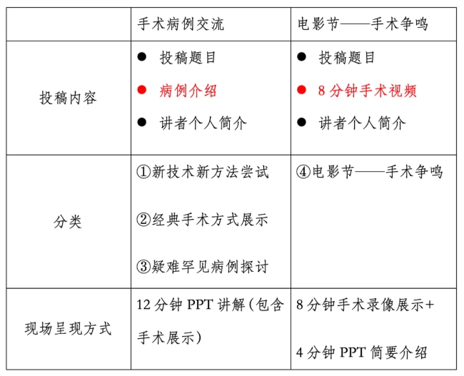 本次征稿分为“手术病例交流”及“电影节——手术争鸣”两大版块: