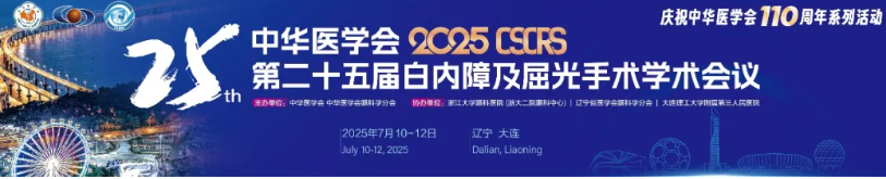 经中华医学会眼科学分会白内障及屈光手术学组讨论决定,“中华医学会第二十五届白内障及屈光手术学术会议”定于2025年7月10日-7月12日在辽宁省大连市召开。本届会议由中华医学会、中华医学会眼科学分会主办,浙江大学眼科医院(浙大二院眼科中心)、辽宁省医学会眼科学分会和大连理工大学附属第三人民医院协办。