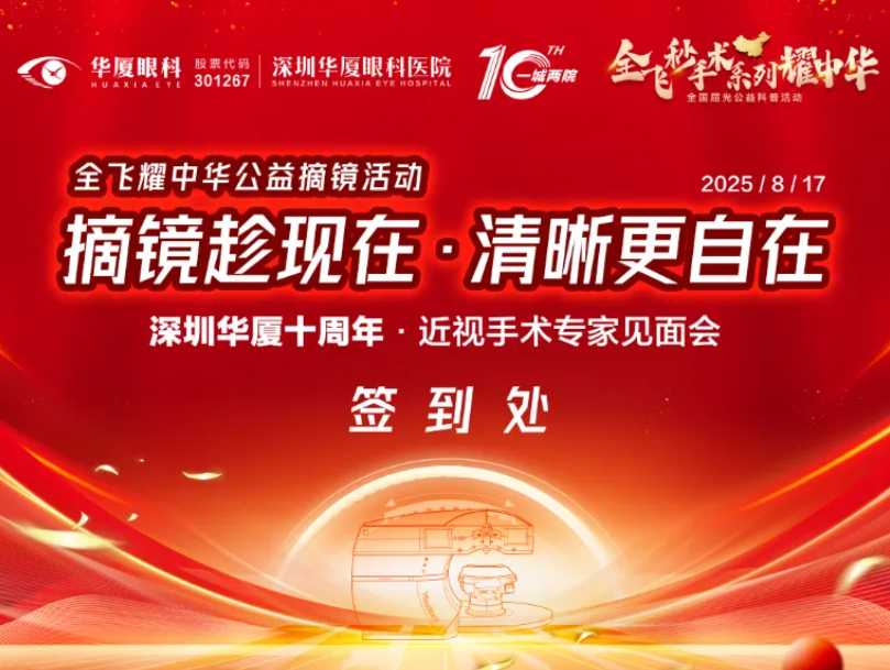 深圳华厦眼科医院将于8月17日下午2点在院内举办摘镜趁现在 清晰更自在——全飞耀中华公益摘镜活动。