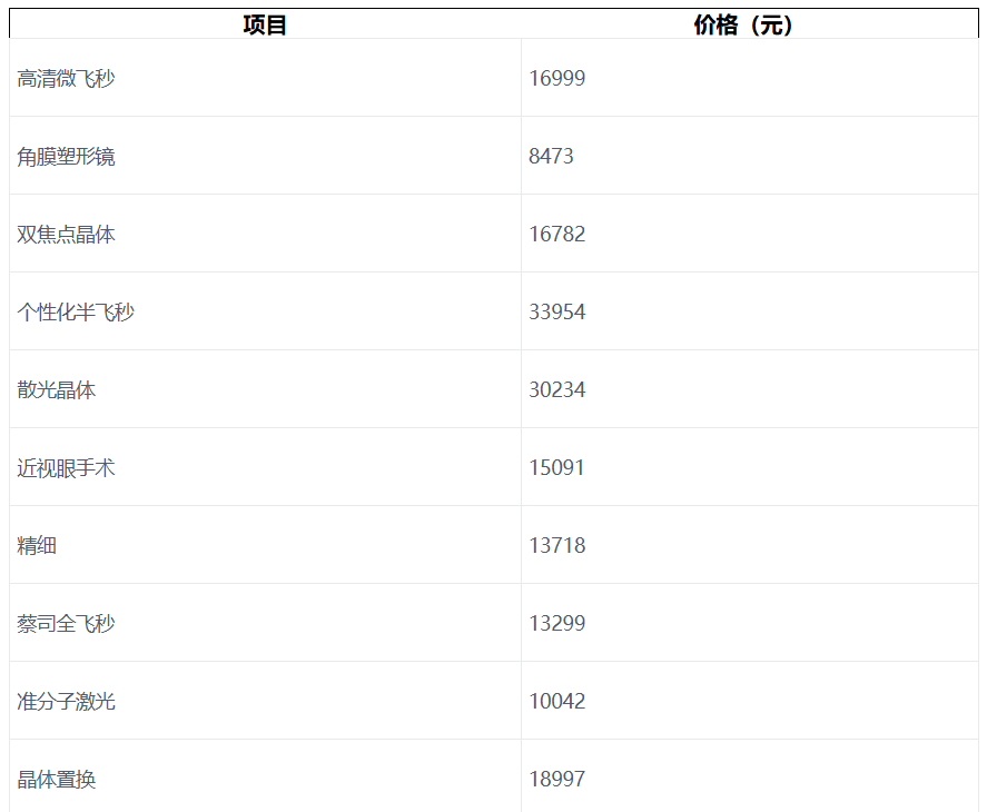 深圳华厦眼科医院参考收费价格表