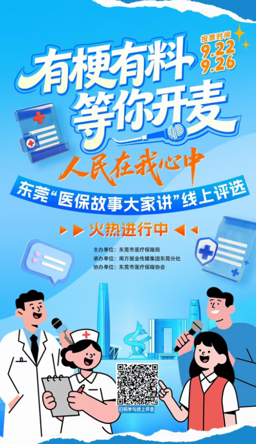 近日,由东莞市医疗保障局主办、南方报业传媒集团东莞分社承办、东莞市医疗保障协会协办的“人民在我心中——2025东莞‘医保故事大家讲’”活动正式开启线上投票。