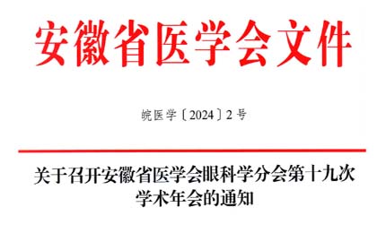 经研究,由安徽省医学会、安徽省医学会眼科学分会主办,中国科学技术大学附属第一医院(安徽省立医院)承办的安徽省医学会眼科学分会第十九次学术年会