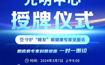 武汉普瑞眼科医院将于3月7日(本周四)上午9:00,举办“光明中心授牌仪式暨守护“糖友”眼健康专家见面会”。