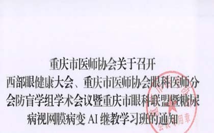 关于召开西部眼健康大会、重庆市医师协会眼科医师分会防盲学组学术会议暨重庆市眼科联盟暨糖尿病视网膜病变AI继教学习班的通知