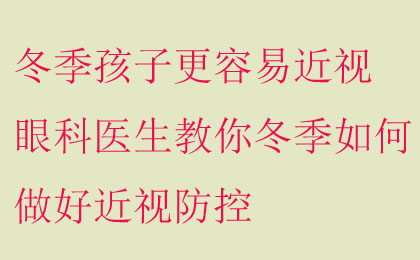 冬季孩子更容易近视 眼科医生教你冬季如何做好近视防控。冬季近视增长相对较快,也是一种正常现象,所以即使孩子近视防控效果欠佳,家长朋友们也不要