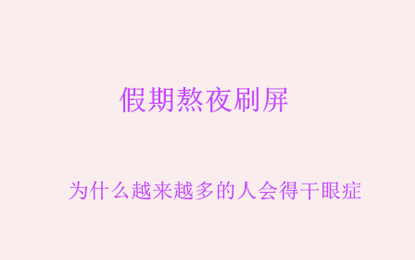 假期熬夜刷屏?为什么越来越多的人会得干眼症,冬季在室内暖气或空调的作用下,空气干燥加剧,除了对皮肤的影响外,眼睛也会受到影响,如果你经常感觉