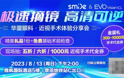 为了能给予大家一个摘掉眼镜的话题,华厦特意邀请了医生来为大家讲解,还有着近视手术福利套餐等着大家。