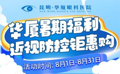 昆明华厦暑假福利,近视防控钜惠购!活动时间:8月1日-8月31日,需要配镜的同学们不要错过优惠专场咯!