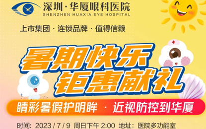 暑期快乐 深圳华厦眼科钜惠献礼,针对儿童青少年暑期近视防控问题,深圳华厦眼科医院小儿眼科于7月9日下午2点在院内举办“暑期快乐钜惠献礼”。