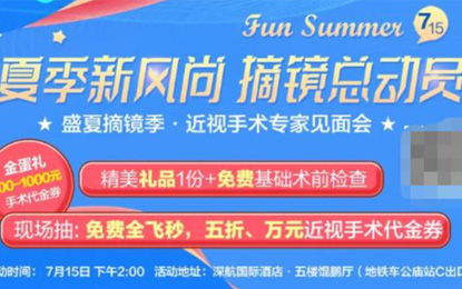 近视让我们大多人都很烦的事情,深圳华厦眼科为助力更多近视朋友摆脱眼镜束缚,6月11日下午2点活动现场推出众多福利。