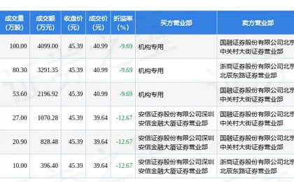 5月4日何氏眼科现3笔折价12.67%的大宗交易 合计成交1.19亿元5月4日何氏眼科现3笔折价12.67%的大宗交易 合计成交1.19亿元